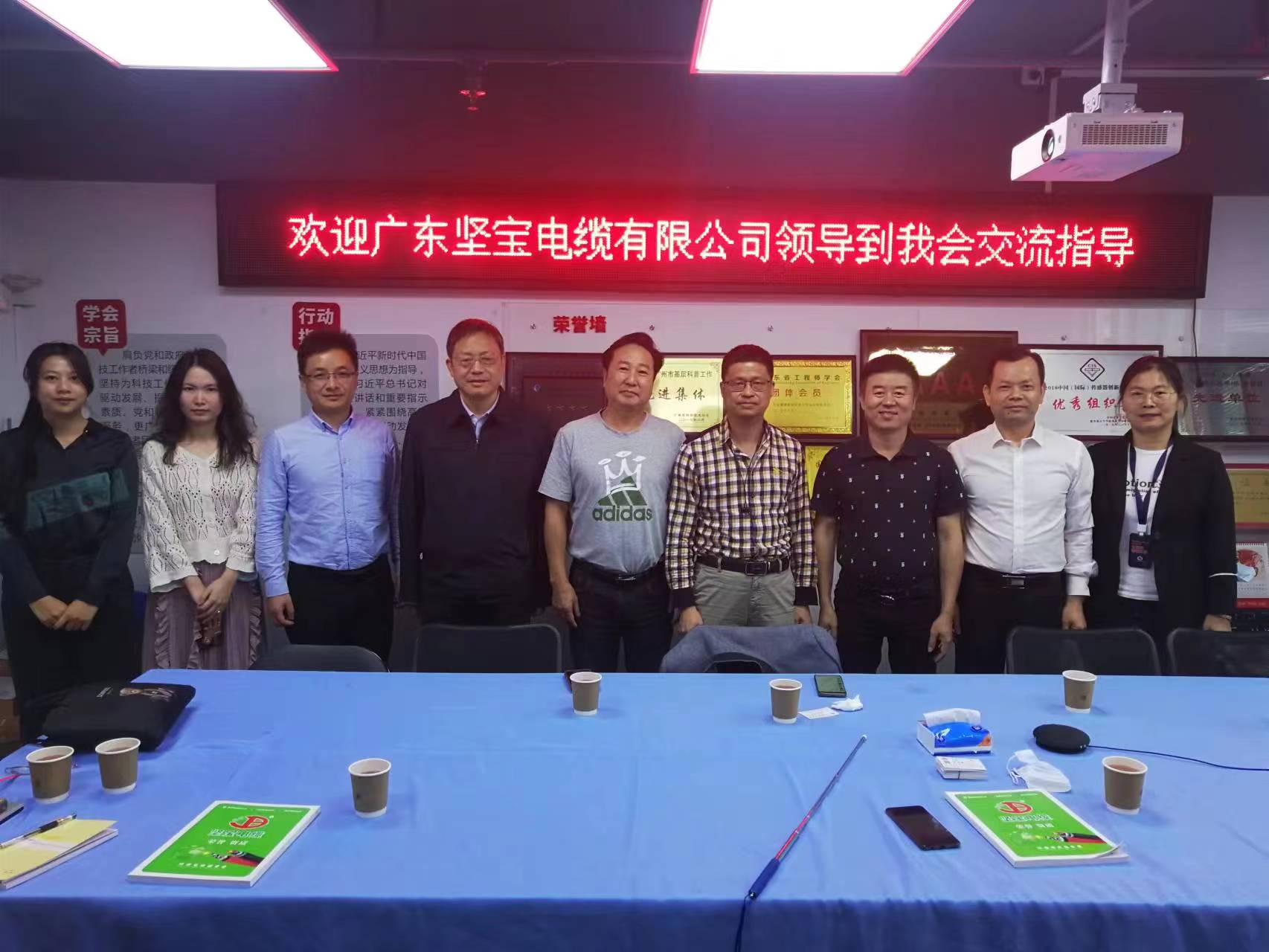 4月17日,廣東香蕉在线观看视频電纜有限公司董事長帶領技術骨幹與廣東省測控技術與裝備應用促進會劉桂雄會長、薛家祥副會長兼秘書長、常務理事黃珍媛副教授一行進行了深入交流對話,由教授級高工黃海坤牽頭。