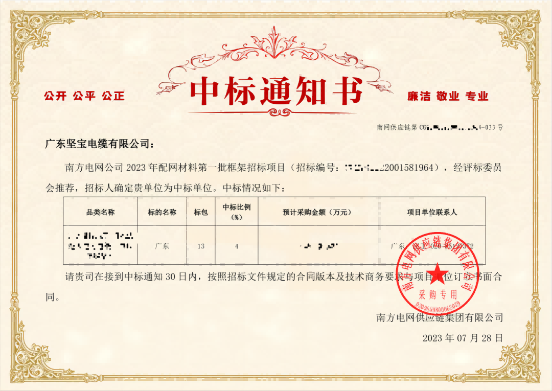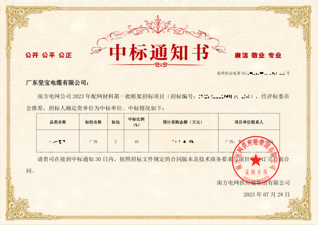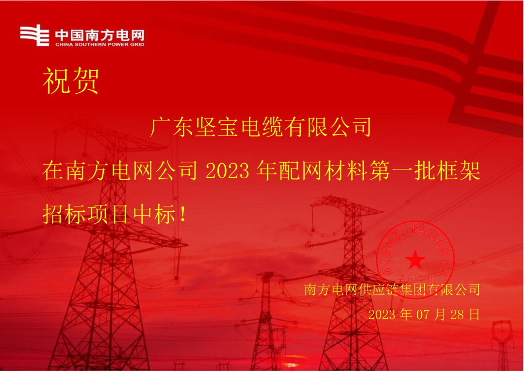 朝夕必爭 全力以赴客戶至上 使命必達近日香蕉在线观看视频電纜再傳捷報憑著過硬的實力獲得客戶肯定中標南方電網公司 2023 年配網材料第一批框架招標項目!