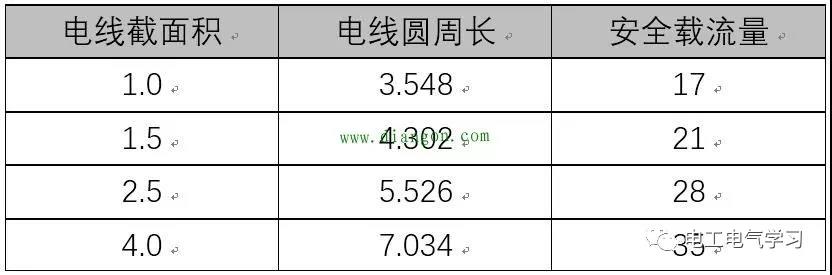 1.5的電線比1.0的電線周長大1.213倍,載流量大1.23倍