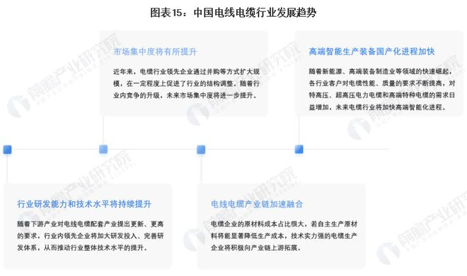 “十四五”期間,國家將大力提升風電、光伏發電規模;提高特高壓輸電通道利用率,加快電網基礎設施智能化改造和智能微電網建設,也因此對電線電纜的質量提出了新的要求。在此背景下,行業內領先企業將加大研發投入、完善研發體係,行業研發能力和技術水平將持續提升。同時,隨著新能源、高端裝備製造業等領域的快速崛起,對特高壓、超高壓電力電纜和高端特種電纜的需求日益增加,未來電纜行業將加快高端智能化進程。